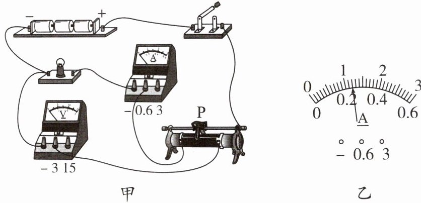 (3)纠正错误后继续进行实验,移动滑动变阻器的滑片,电压表的示数为$2.5\ V$时,电流表的示数如图乙所示,示数为______$A$,小灯泡的额定功率为______$W$。