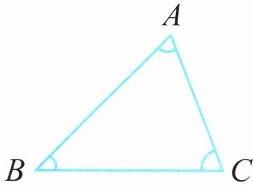 测量下面三角形中各角的度数,并标在三角形上。你发现了什么?