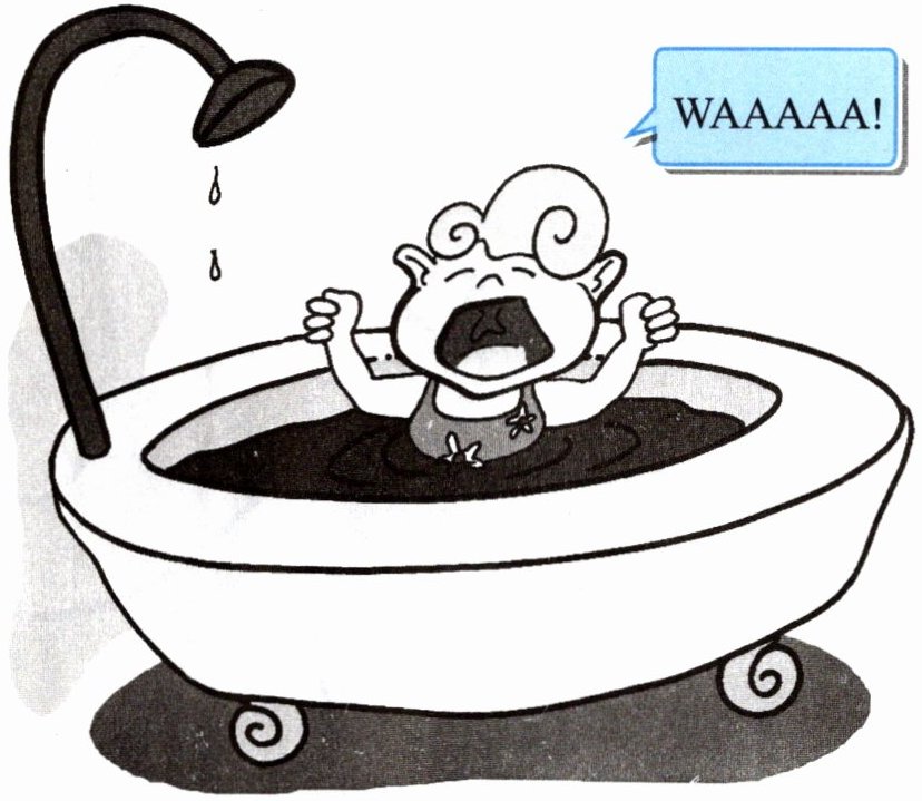 My mother says, “Oh, Baby Becky! Do you want to go swimming?” She puts water in the bathtub. She puts toys in the bathtub. Then she puts me in the bathtub. “Look!” she says. “It’s a little swimming pool! Isn’t that fun?”