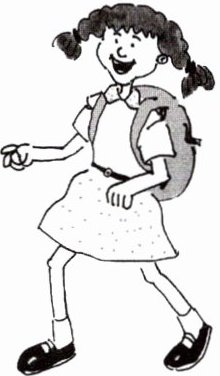 goes to school by bus, but sometimes she goes to school on foot. She is never late