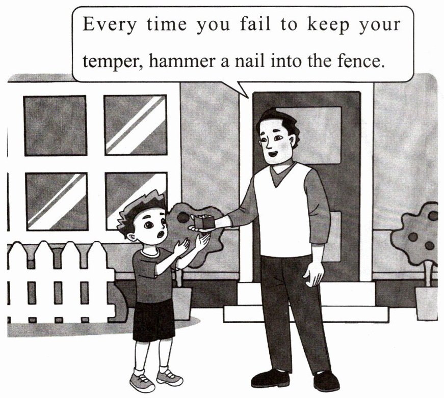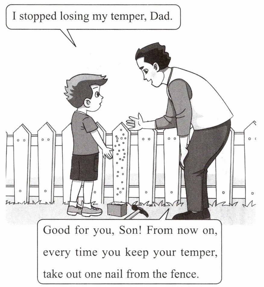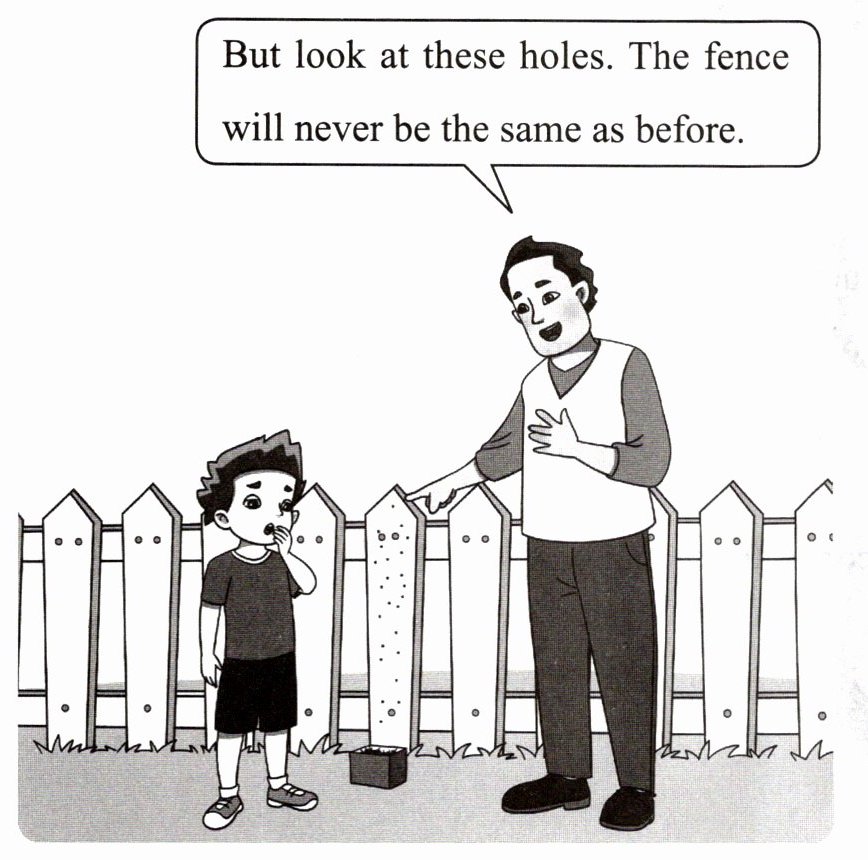 The boy learned a lesson. When people say things in anger, they leave scars just like the holes in the fence.