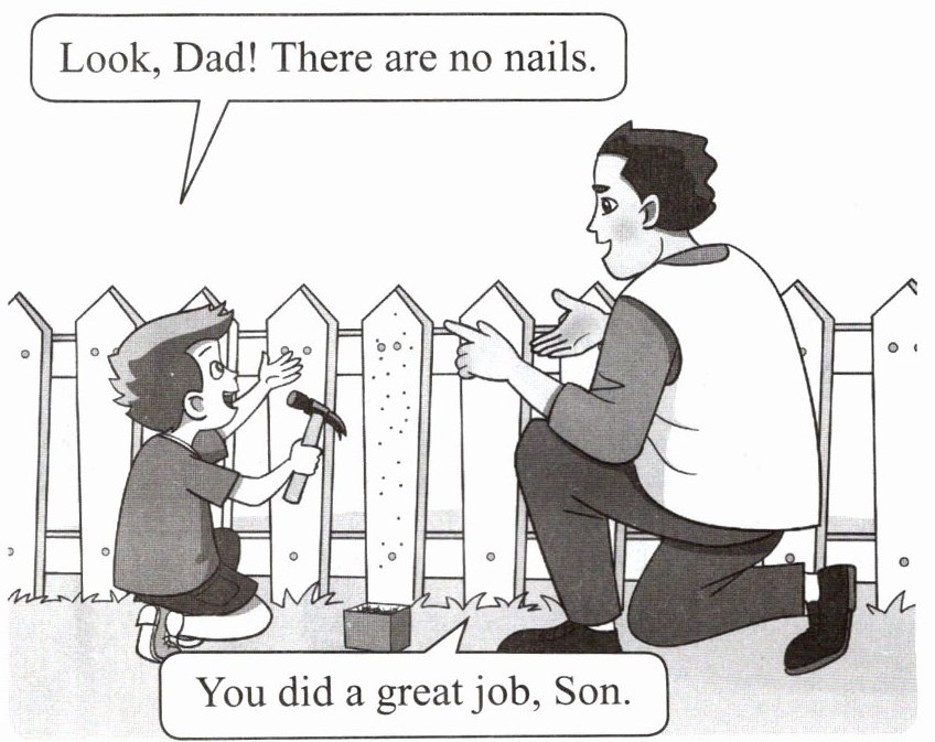 Two months later, Matt didn’t need to hammer any nails. He felt happy and told his dad about his progress. His dad praised him.