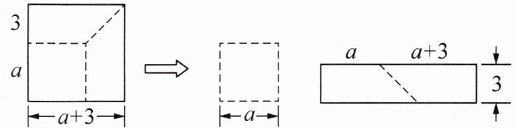如图,将边长为$a + 3的正方形纸片剪去一个边长为a$的正方形后,剩余部分可剪拼成一个长方形(不重叠无缝隙),若拼成的长方形一边长为$3$,请解答下列问题: