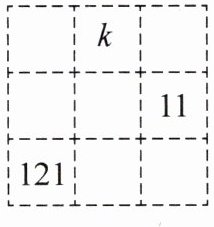 7. 如图,是一个$3×3$的幻方,当空格中填上适当的数后,下列每行每列以及每条对角线上的和都相等,则$k = $