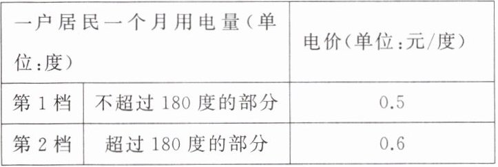 (2)若该市某户 12 月用电量为 x 度,请用含 x 的式子分别表示 0 ≤ x ≤ 180 和 x > 180 时该户 12 月应交电费多少元.