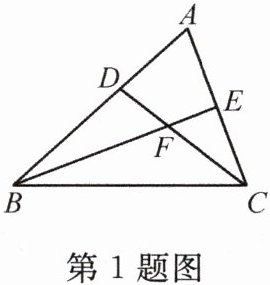 1. 如图,在$\triangle ABC$中,$\angle ABC$,$\angle ACB的平分线BE$,$CD相交于点F$,$\angle ABC = 42^{\circ}$,$\angle A = 60^{\circ}$,则$\angle BFC$的度数为(