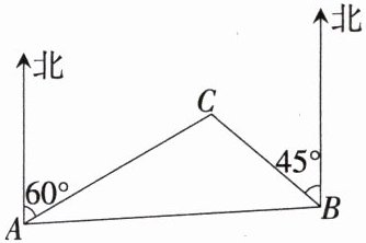 3. 如图,$C岛在A岛的北偏东60^{\circ}$方向,在$B岛的北偏西45^{\circ}$方向,则从$C岛看A$、$B两岛的视角\angle ACB = $