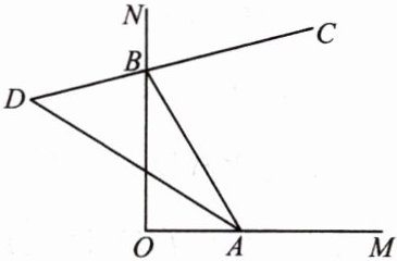 2. 如图,$\angle MON = 90^{\circ}$,点$A$,$B分别在OM$,$ON$上运动(不与点$O$重合),$BC平分\angle ABN$,$BC的反向延长线与\angle BAO的平分线交于点D$。