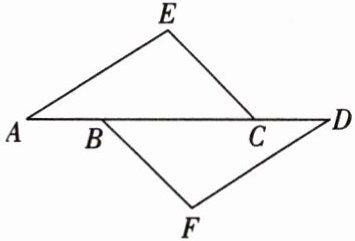 2. 如图,点$A$,$B$,$C$,$D$在同一条直线上,且$AB = CD$,请从以下三个条件:①$AE // DF$;②$AE = DF$;③$EC = FB$中,再选两个作为已知条件,另一个作为结论,推出一个正确的命题,并证明这个命题。