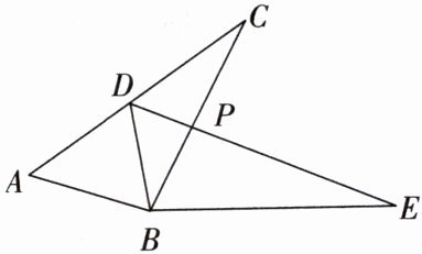 2. 如图,已知$\triangle ABC \cong \triangle DBE$,点$D在边AC$上,$BC与DE交于点P$,$\angle ABE = 162^{\circ}$,$\angle DBC = 30^{\circ}$,$AD = DC = 2.5$,$BC = 4$.