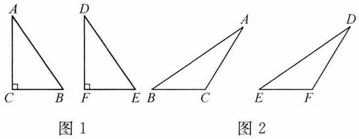 ,得出$\triangle ABC \cong \triangle DEF$.(2)第二种情况(如图2)在$\triangle ABC和\triangle DEF$中,$\angle C = \angle F$($\angle C和\angle F$均为钝角),$AC = DF$,$AB = DE$.求证:$\triangle ABC \cong \triangle DEF$.