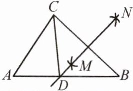 3. 如图,在 $ \triangle ABC $ 中,$ AB > AC $,按以下步骤作图:分别以点 $ B $ 和点 $ C $ 为圆心,大于 $ BC $ 一半的长为半径作圆弧,两弧相交于点 $ M $ 和点 $ N $,作直线 $ MN $ 交 $ AB $ 于点 $ D $,连接 $ CD $. 若 $ AB = 6 $,$ AC = 4 $,则 $ \triangle ACD $ 的周长为(