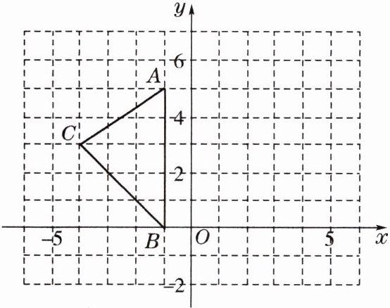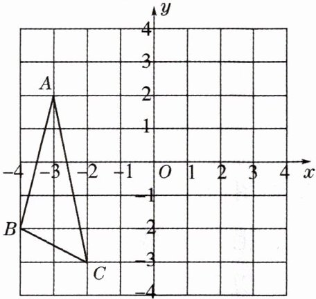 4. 如图,已知 $ \triangle ABC $,求顶点 $ A $,$ B $,$ C $ 关于 $ y $ 轴对称的点 $ A' $,$ B' $,$ C' $ 的坐标。