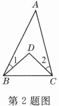 2. 已知$\angle 1 = 20^{\circ}$,$\angle 2 = 25^{\circ}$,$\angle A = 35^{\circ}$,则$\angle BDC$的度数为
