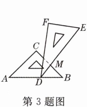 3. 一副三角板叠在一起如图放置,最小锐角的顶点$D恰好放在等腰直角三角板的斜边AB$上,$BC与DE交于点M$,如图,$\angle ADF = 100^{\circ}$,那么$\angle BMD$为