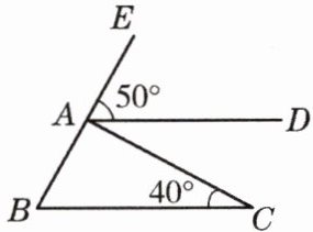 2. 已知$AD // BC$,$\angle EAD = 50^{\circ}$,$\angle ACB = 40^{\circ}$,则$\angle BAC = $