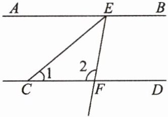 3. 如图,已知直线$AB // CD$,$CE平分\angle AEF$,若$\angle 1 = 40^{\circ}$,则$\angle 2$的度数为(