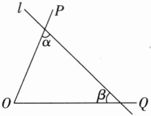 1. 如图,$\angle POQ = 70^{\circ}$,直线$l与OP$,$OQ$都相交(不经过点$O$),随着直线$l$位置的改变,则$\alpha$,$\beta$的度数之和(