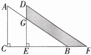 4. 如图所示,直角三角形$ACB$中,$\angle C = 90^{\circ}$,$AC = 12$,将直角三角形$ACB沿CB方向平移得直角三角形DEF$,$BF = 4$,$DG = 3$,则阴影部分面积为