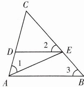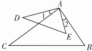 7. 如图,$\angle 1 = \angle 2$,添加一个条件,使得$\triangle ADE \backsim \triangle ACB$