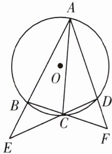 1. 四边形$ABCD内接于\odot O$,$AB$,$DC的延长线交于点E$,$AD$,$BC的延长线交于点F$,请你写出图中所有的相似三角形