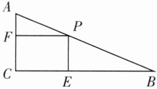 (1)若设 $ PB $ 为 $ x \mathrm{cm} $,四边形 $ PECF $ 的面积为 $ S \mathrm{cm}^{2} $,试确定 $ S $ 与 $ x $ 之间的关系式。