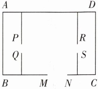 4. 一养鸡专业户计划用 $ 116 \mathrm{m} $ 长的篱笆围成如图所示的三间长方形鸡舍,门 $ MN $ 宽 $ 2 \mathrm{m} $,门 $ PQ $ 和 $ RS $ 的宽都是 $ 1 \mathrm{m} $,怎样设计才能使围成的鸡舍面积最大?