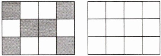4. 如图在 $ 4 × 3 $ 的网格上,由个数相同的白色方块与黑色方块组成一幅图案,请仿照此图案,在右边网格中设计出一个是中心对称但不是轴对称的图形(黑白方块的个数要一样)。