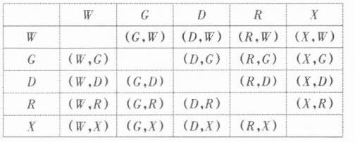 由表可知,共有20种等可能结果,其中抽到“W”和“R”的结果有2种,