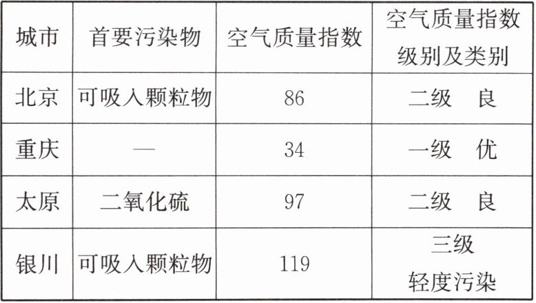 5. 下表为某日我国部分城市的空气质量指数日报。请根据表中内容填空。