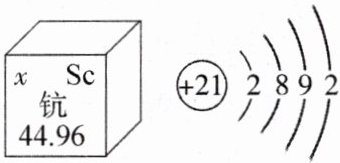 (1)右图是稀土元素钪在元素周期表中的相关信息及其原子结构示意图。图中 $ x = $