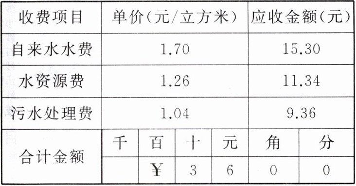 7. 下表是小明家某月自来水缴费通知单的部分内容,请结合缴费单回答下列问题。