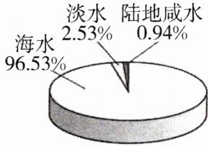1. 下图是地球咸水、淡水的储量比示意图,以下关于水的说法错误的是(