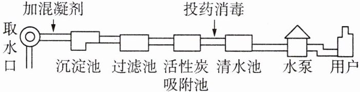 4. 自然水域中的水是不能直接饮用的。自来水厂净水过程如下图。