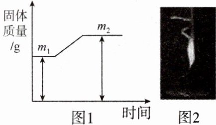。若固体质量变化用图 1 表示,则 $ m_2 $ 与 $ m_1 $ 之差表示氧气