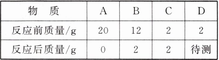 (填“反应物”“生成物”或“催化剂”)。(3)反应后 $D$ 物质的质量是