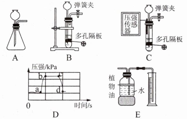 (4)化学研究小组的同学在装置 C 中连接压强传感器,测定试管内气体压强变化的情况(如图 D)。bc 段压强不变的原因是