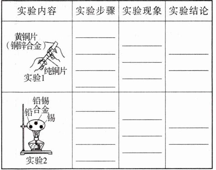 7. 请完成“对金属和合金性质的认识实验”的实验报告。