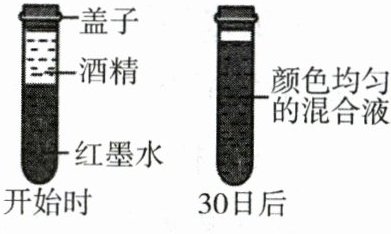 (3)先在一支试管中装一半红墨水,再往其中注满酒精(缓缓注入),加盖密封后静置,30 日后观察现象如图所示。此实验说明分子之间