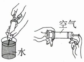 (4)小组成员取两支大小相同的医用注射器,分别吸入等体积的空气和水,用手指顶住注射器末端的小孔,将栓塞慢慢推入,实验如图所示。实验后,观察到较难被压缩的是