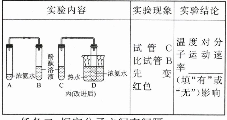 (填“有”或“无”)影响|任务二:探究分子之间有间隔