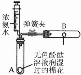 (1)“乘风破浪”组设计了如右图所示的实验,实验前弹簧夹处于关闭状态,实验时,将一定量浓氨水滴在 A 试管中的棉花上,再打开弹簧夹,能证明分子在不停地运动的现象是