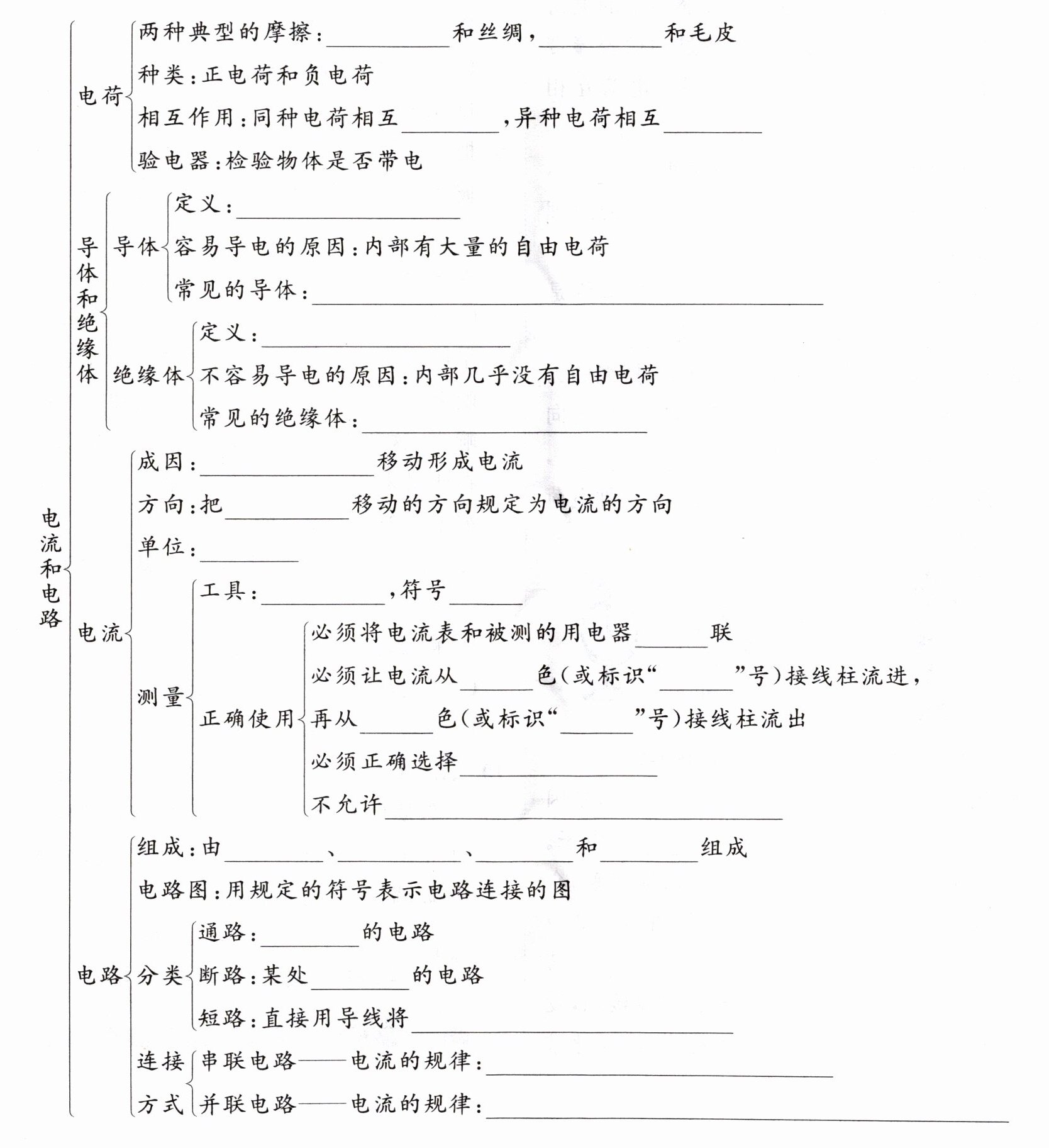 玻璃棒 橡胶棒 排斥 吸引 容易导电的物体 金属、人体、石墨、大地、水、酸碱盐的水溶液 不容易导电的物体 橡胶、陶瓷、玻璃、塑料 电荷的定向 正电荷 安培 电流表 ④ 串 红 + 黑 - 电流表的测量范围 将电流表直接连到电源的两极 电源 用电器 导线 开关 接通 断开 电源两极连接起来的电路 在串联电路中电流处处相等 在并联电路中干路电流等于各支路电流之和