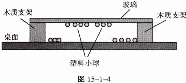 10. 如图 15 - 1 - 4 所示为一块玻璃下面放置部分轻质塑料小球,玻璃与丝绸摩擦后带上正电,导致部分塑料球会跳起来吸附住玻璃,下列说法正确的是(