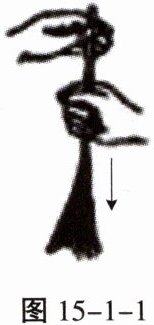 5. 如图 15 - 1 - 1,将塑料绳一端扎紧,把绳的另一端尽可能撕成更多的细丝,用手从上向下捋几下,观察到的现象是