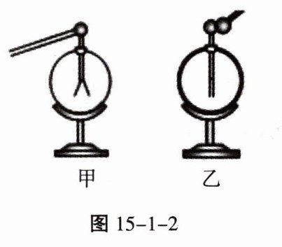 电子。若把它和不带电的验电器金属球接触,会发现验电器金属箔片张开,如图 15 - 1 - 2 甲所示,原因是同种电荷相互排斥