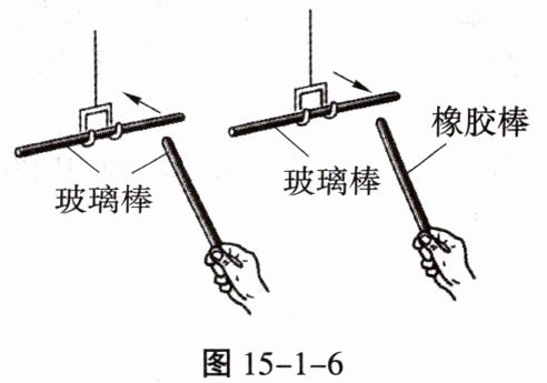 13. 如图 15 - 1 - 6 所示,在“探究电荷的种类和相互作用规律”的实验中: