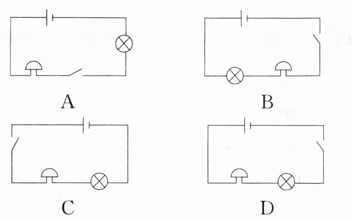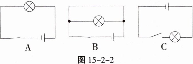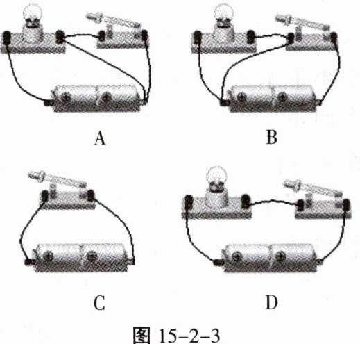 7. 图 15 - 2 - 3 中的四个电路中,电路正确而且开关闭合后有电流通过小灯泡的电路是(