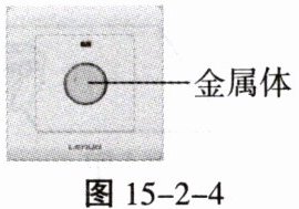 8. 如图 15 - 2 - 4 是楼道常见的一种触摸开关。当手指直接接触开关面板上的金属体时,因为人体是导体,会触发开关闭合,电路中的电灯发光。手持下列物体去接触木板上的金属体时,也能使电灯发光的是(