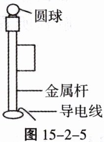 9. 如图 15 - 2 - 5 是加油站里常见的“静电释放器”。工作人员提油枪加油前,必须用手触摸圆球清除身体上的静电。下列关于“除电”说法正确的是(